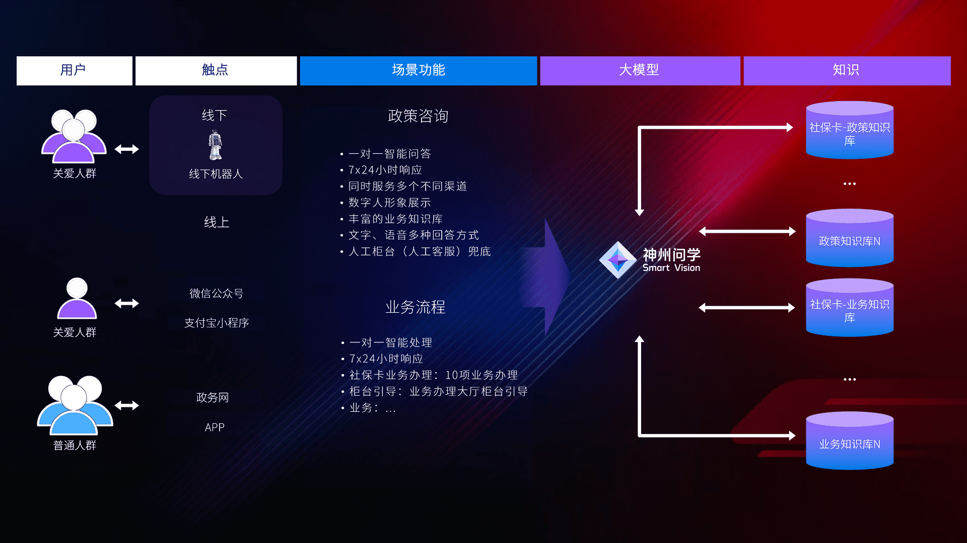 • 线上线下全覆盖:线上提供微信公众号、、支付宝小程序、、、、政务网、、app多种渠道,,,,与线下机器人形成完整服务体系。。。。